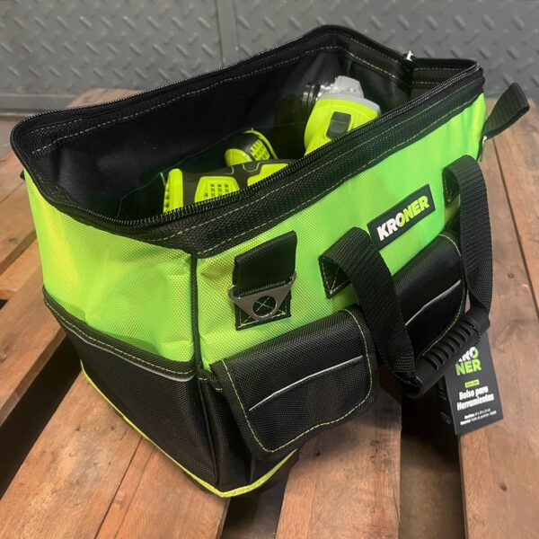 Cuenta con 8 bolsillos exteriores y 6 bolsillos interiores, proporcionando espacio suficiente para guardar y organizar tus herramientas de manera eficiente. Es ideal para llevar herramientas eléctricas, destornilladores, alicates, llaves o cualquier otro utensilio, manteniéndolos ordenados y accesibles. Incluye correa larga con empuñadura ergonómica.