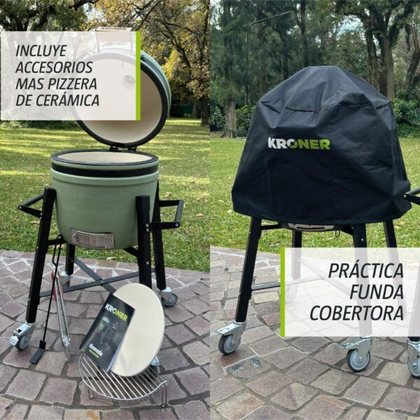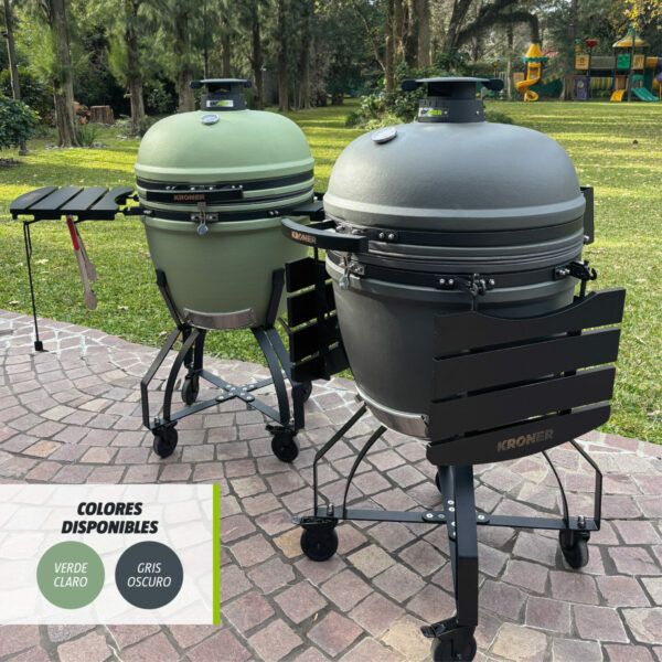 H144 Kamado Parrilla Ahumador 15 Pulgadas Cerámica c/ruedas Gris