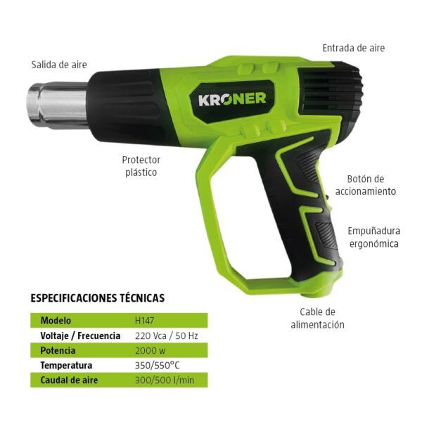 Aplicaciones: soldadura de plásticos, separación de láminas adhesivas, eliminación de recubrimientos antiguos